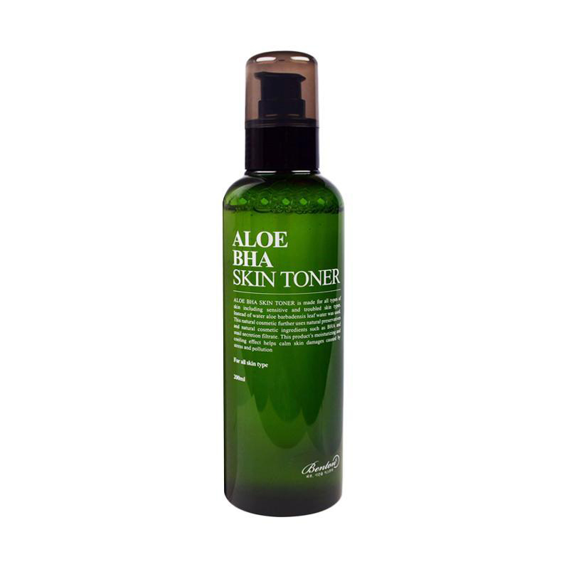 Pilihan toner terbaik jatuh pada Benton Aloe BHA Skin Toner. Produk ini merupakan jenis exfoliating toner yang memiliki kandungan BHA rendah yakni 0,50%. Jenis toner ini memiliki tekstur menyerupai gel dan mudah untuk diaplikasikan ke kulit wajah. Kandungan aloe vera memberikan efek lembap pada kulit. Selain itu toner ini juga sangat membantu memperlambat proses penuaan dini di wajah.