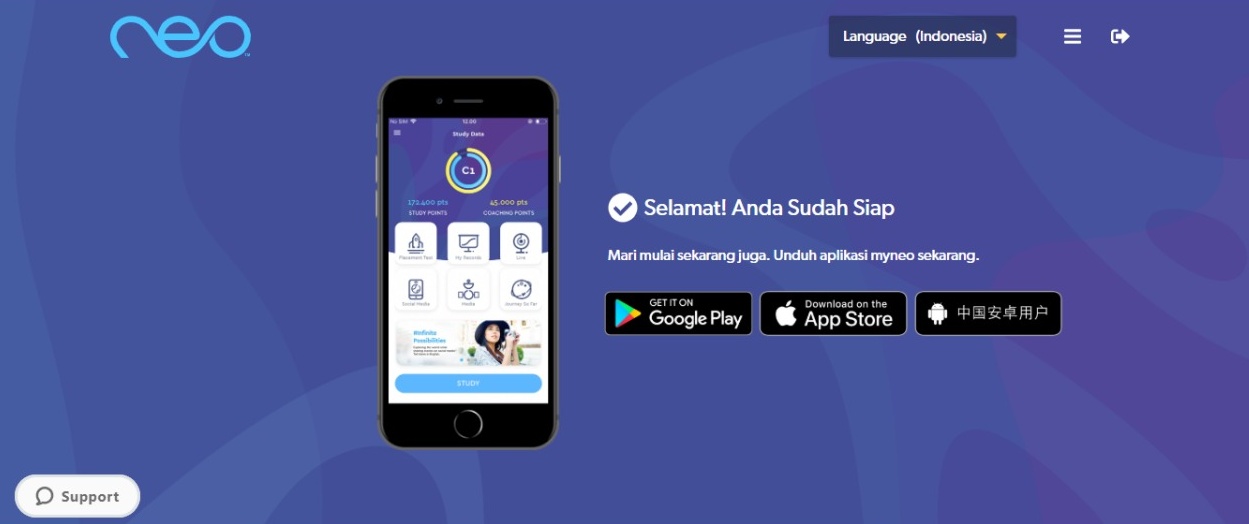 Sebaliknya, sistem Neo yang akan memberikanmu materi step by step sesuai dengan skill kamu dan sesuai dengan tujuan utama, yaitu naik level, dan mendapatkan sertifikasi CEFR. Jadi, kamu nggak perlu pusing, kamu tinggal follow the rules aja.