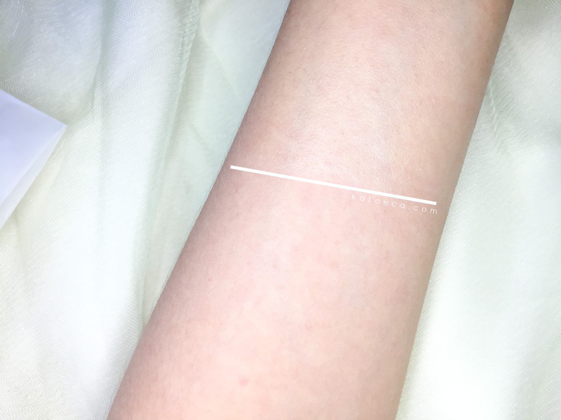 Di atas garis, kulit lebih lembap setelah memakai produk, di bawah garis terlihat kering karena belum memakai produk |