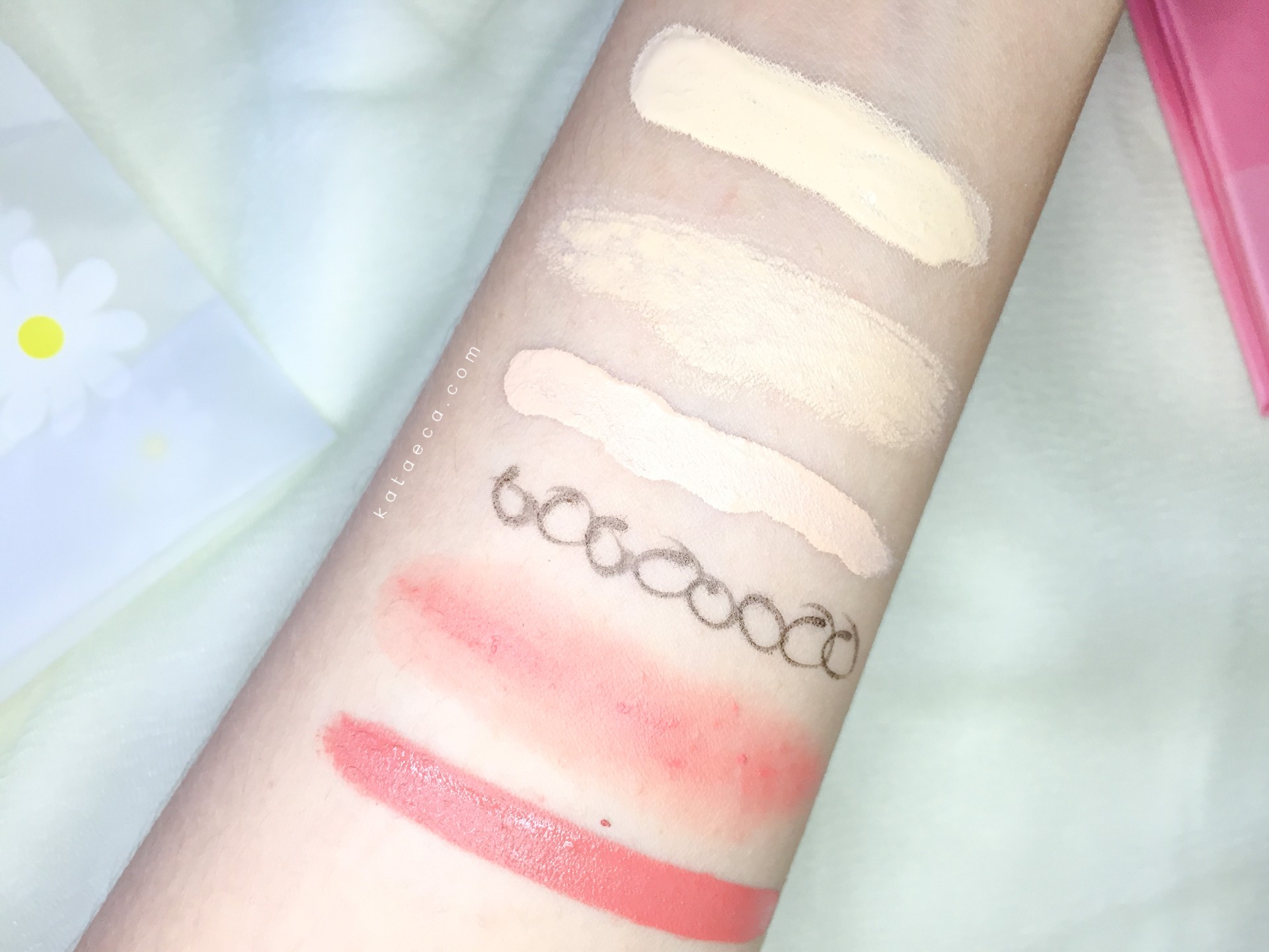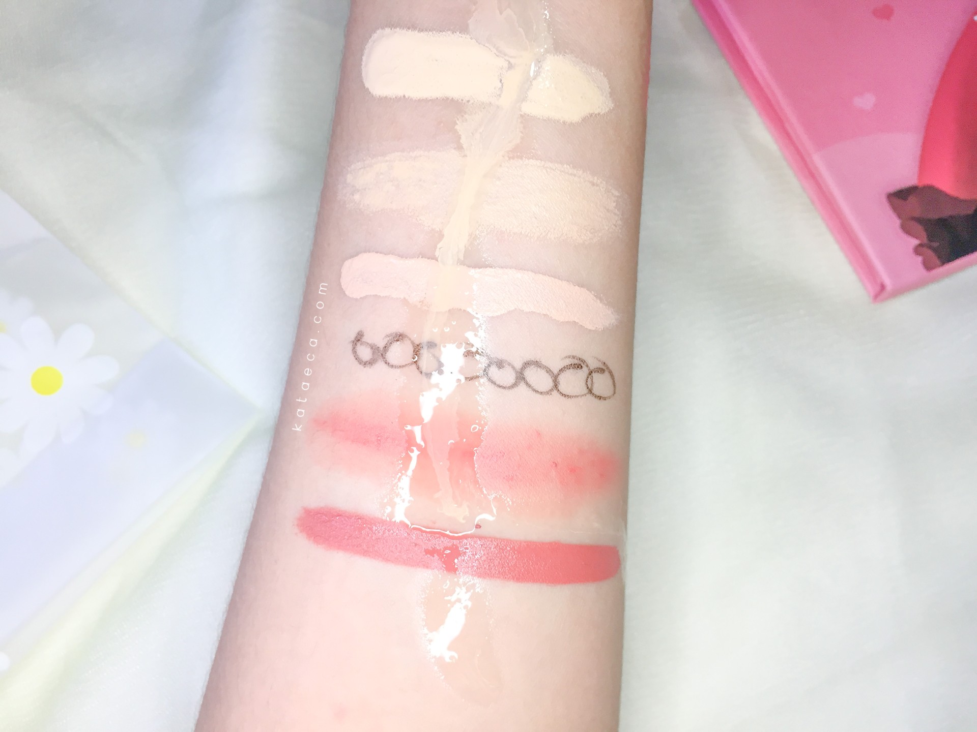 Dari yang paling atas, BB cream, cushion, eyeliner waterproof, blush, lip matte waterproof |