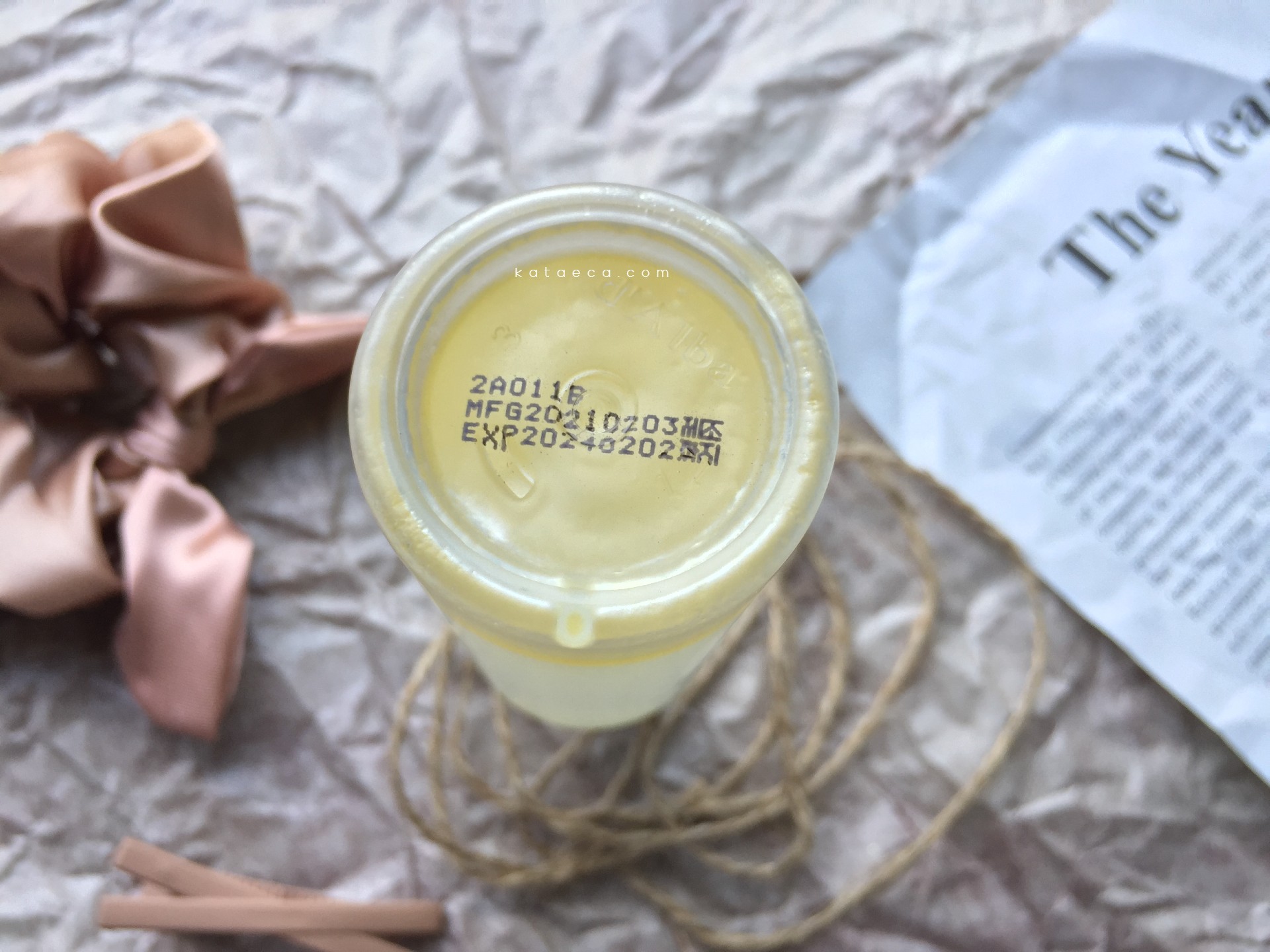 Ketika disemprotkan, serum yang keluar sangat merata. Overall, kemasannya kokoh, sama sekali nggak ringkih. Pada bawah botolnya juga tertera keterangan expired date.