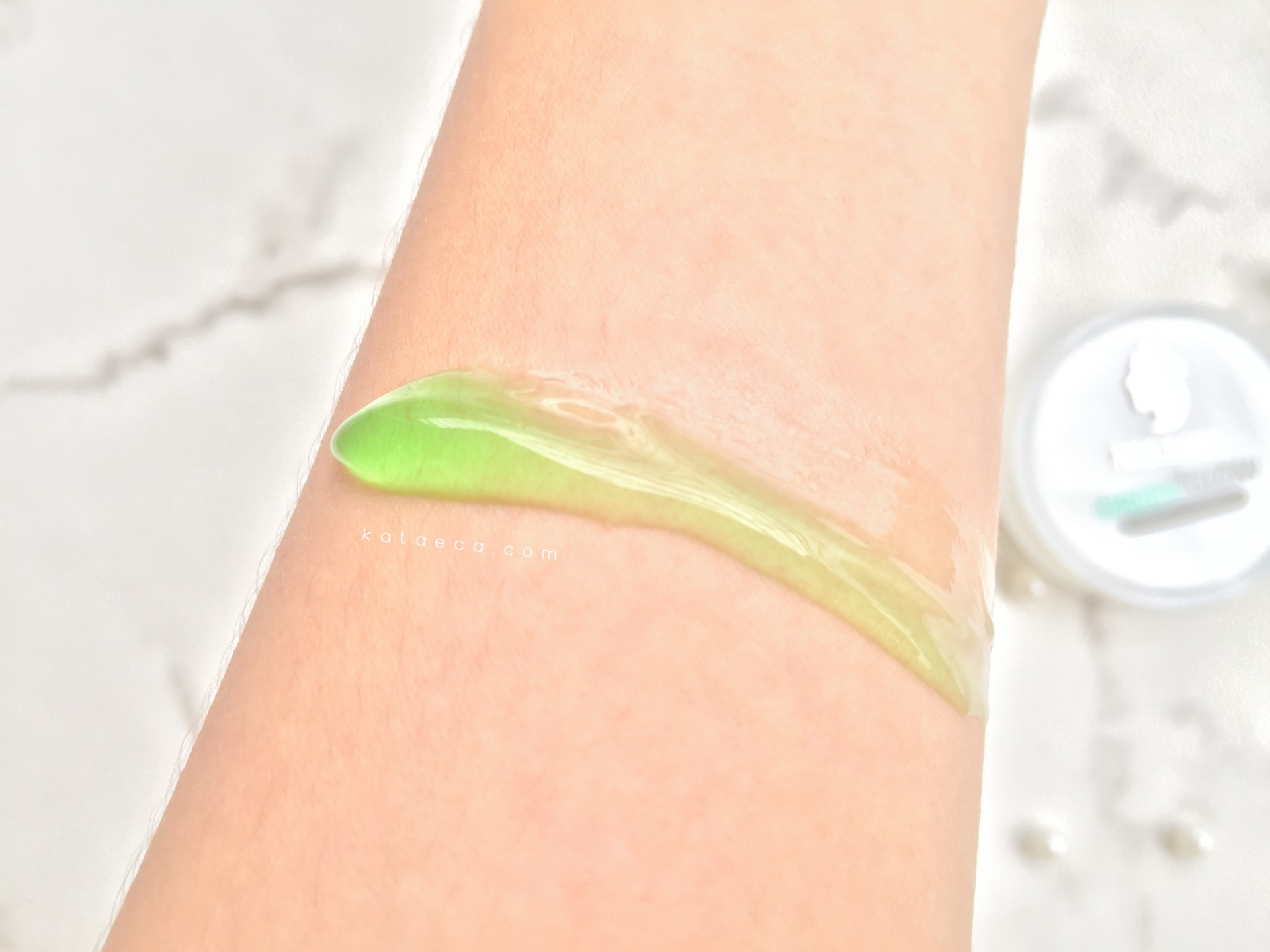 Teksturnya gel berwarna hijau. Mirip banget dengan tekstur aloe vera gel pada umumnya. Aromanya pun sangat mirip. Beraroma aloe vera yang lembut. Sedikit thick tapi cepat meresap di kulit.