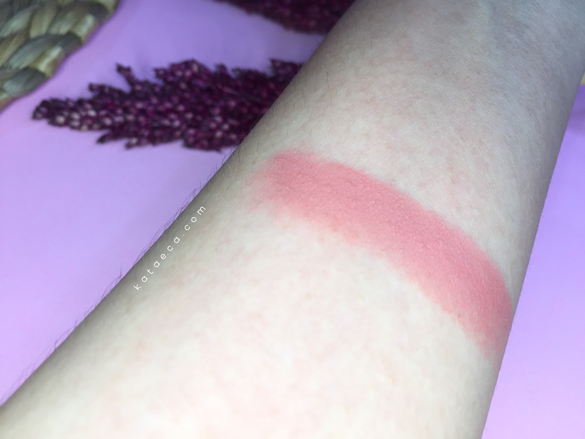 Shade yang aku swatch di sini nomor 59. Warna ini tuh playful banget dan cocok banget buat dibikin ombre sama warna nude di produk matte lipstick tadi.