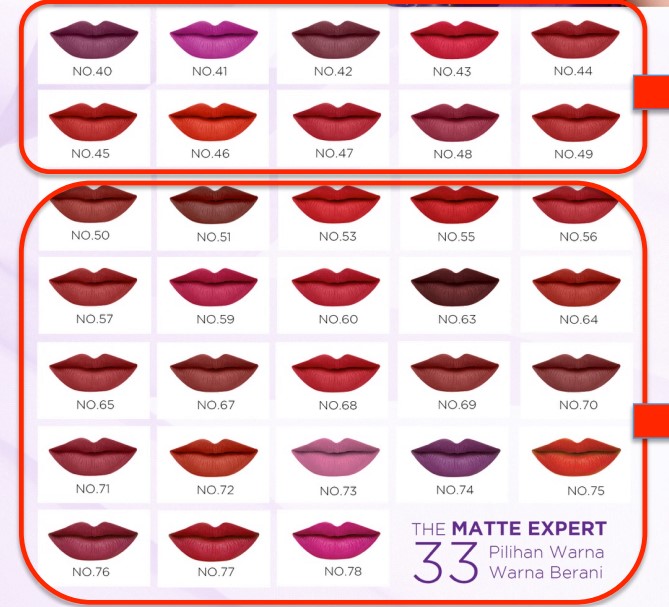 Shade Mirabella Colorfix ini ada banyak yaitu 33 shades. Kamu bisa lihat di bawah ini ya.