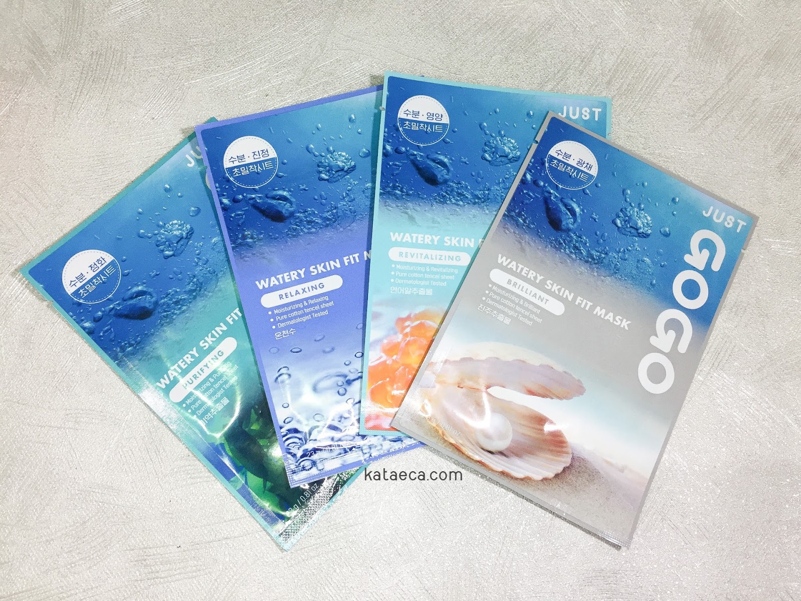 Varian: Aku dapat 4 varian dari Just GoGo mask ini yaitu: Briliant, Revitalizing, Relaxing, Purifying