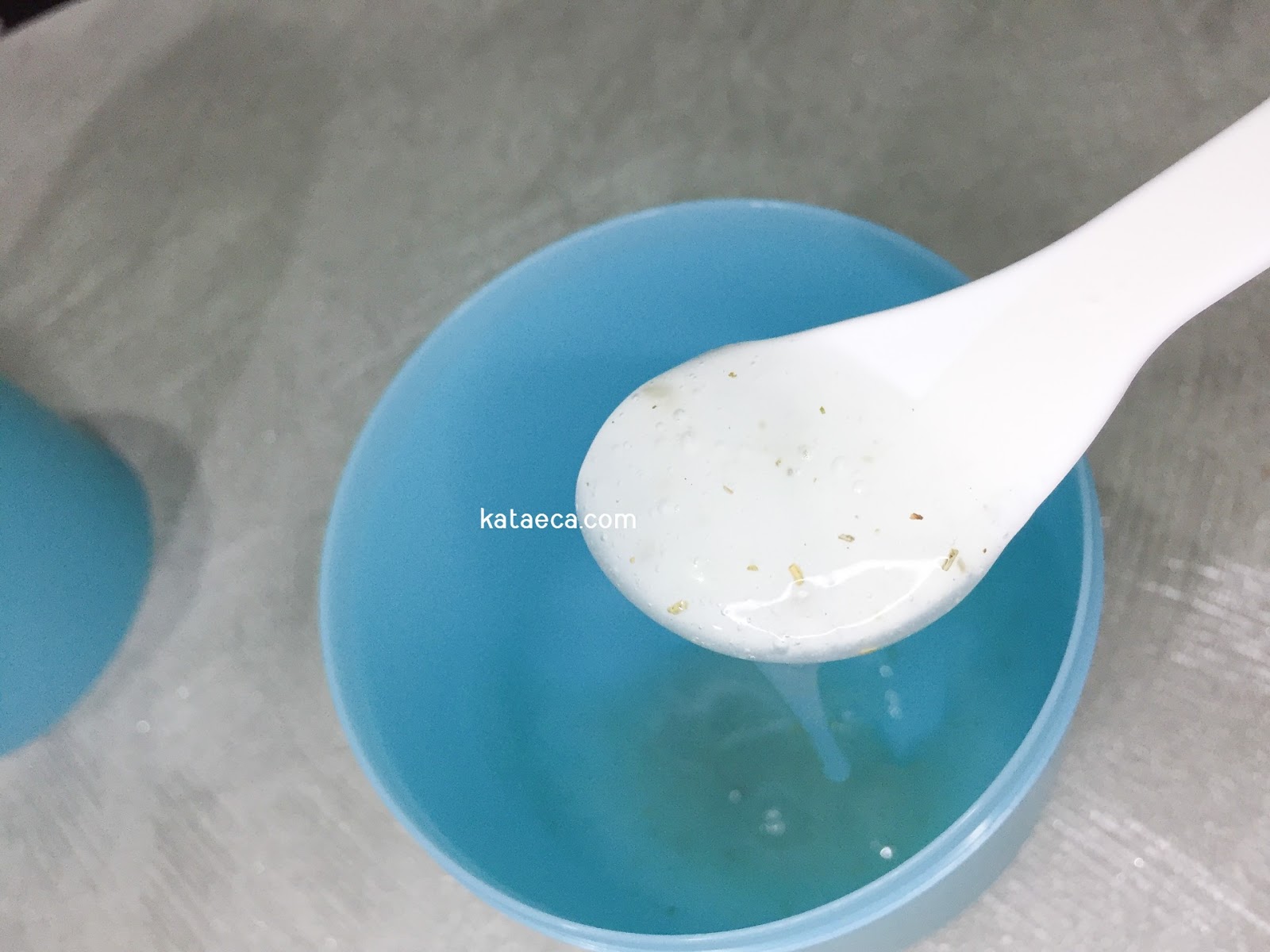 Tekstur: Mempunyai tekstur gel dan berwarna bening.