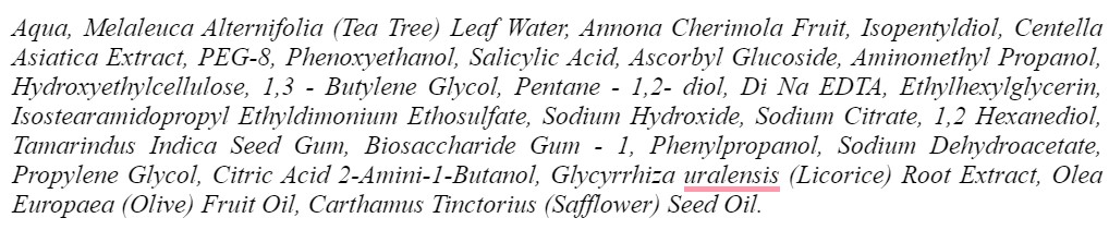 Salicylic acid untuk meredakan peradangan dan mengangkat kotoran yang bisa menyumbat pori-pori, liquorice yang dapat menutrisi kulit dan mencegah hiperpigmentasi.