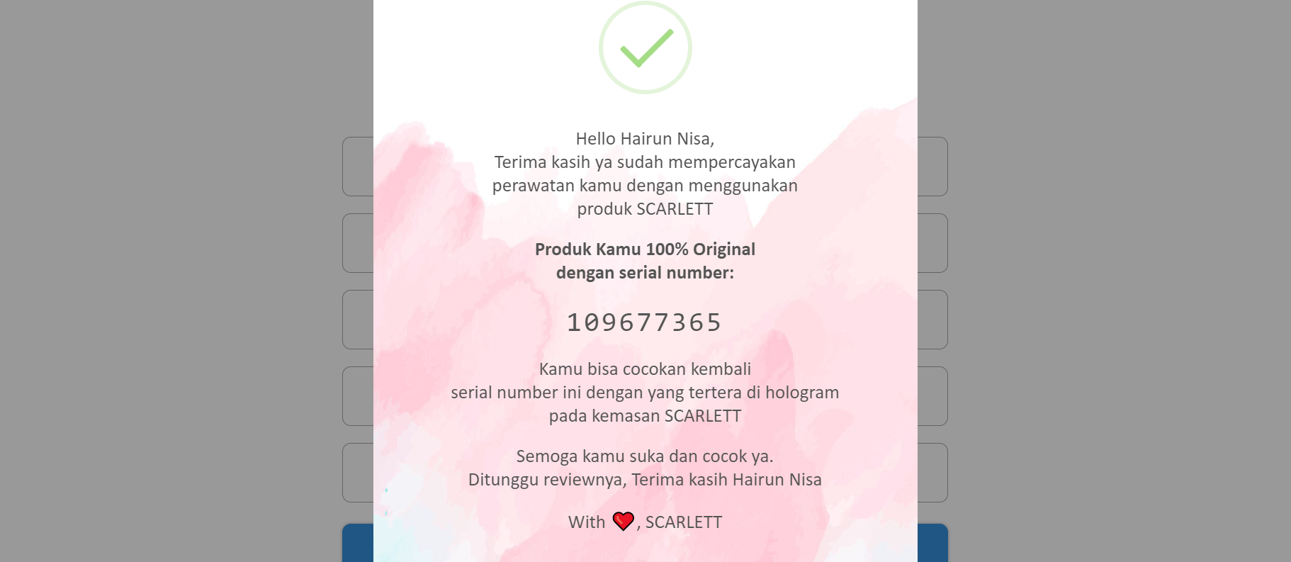 1. Masuk ke https://verify.scarlettwhitening.com/